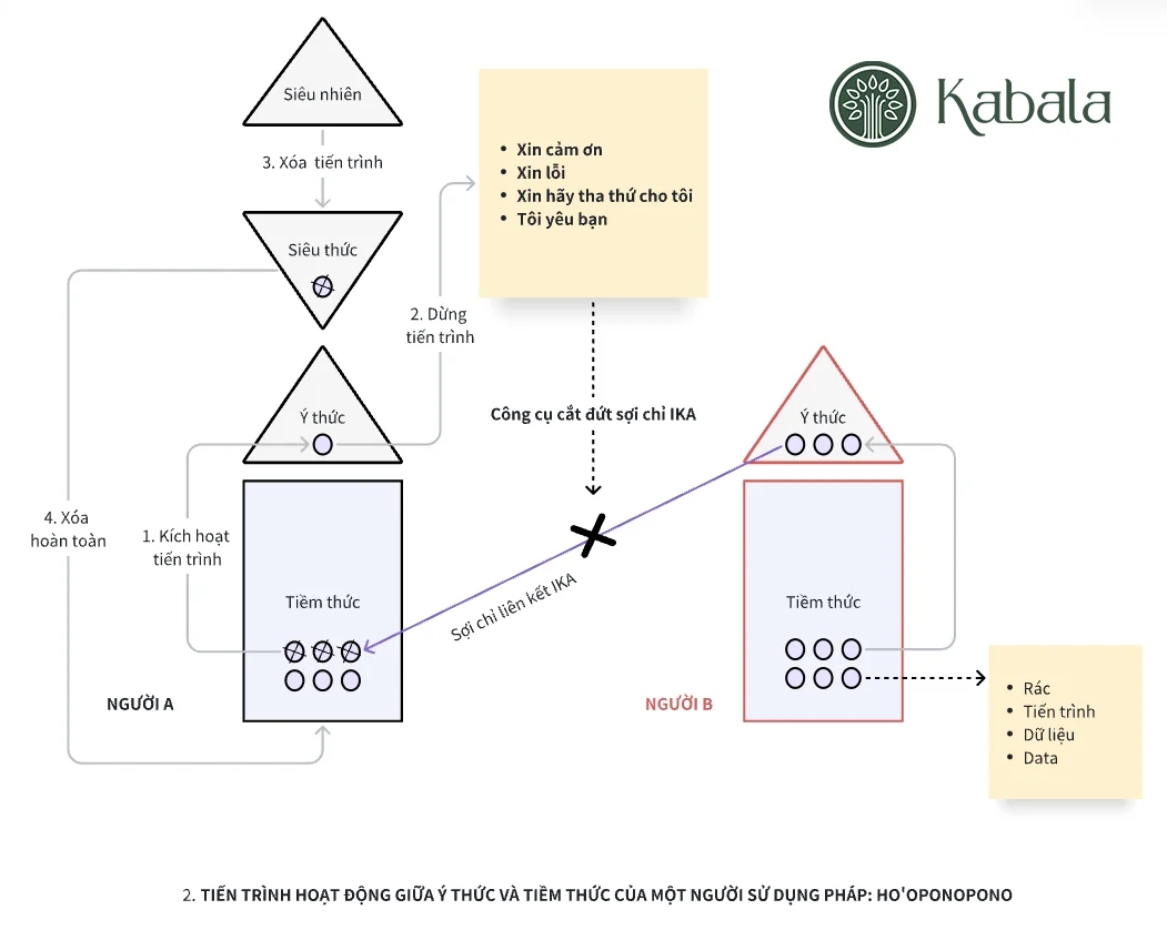 Cắt đứt sợi chỉ liên kết IKA đối với các “rác” đó, bằng bộ công cụ: Tôi cảm ơn, Tôi xin lỗi, Xin hãy tha thứ cho tôi, Tôi yêu bạn. Sau đó tiến trình tâm thức của bạn sẽ tự hoạt động theo các bước: